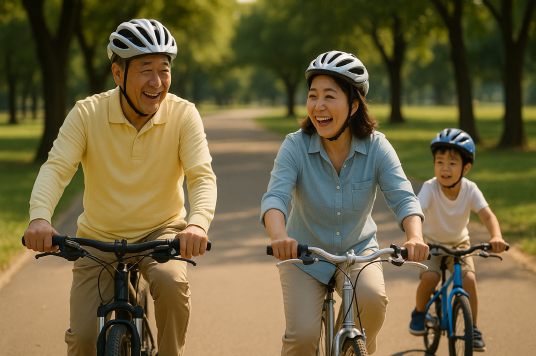 가족과 함께 근처 공원이나 강변 자전거도로를 달리면 운동이 놀이가 된다. 손주와 함께 타면 세대 간 교류에도 도움이 된다.