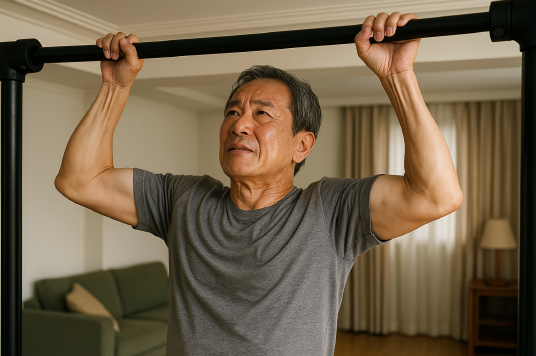 60대가 되니까 몸의 변화를 가장 먼저 느낀 것은 체력이 급격히 줄어든다는 사실이었다. 예전에는 계단을 오르거나 잠깐 뛰는 정도는 아무렇지 않게 해냈지만, 어느 순간부터는 무릎이 쉽게 아프고 몸에 힘이 부족하다는 걸 실감했다. 건강을 지키려면 단순히 걷기나 가벼운 스트레칭같은 유산소운동만으로는 부족하다고 생각했다. 그래서 집에서 할 수 있는 운동을 찾다가 턱걸이에 도전하게 되었다.