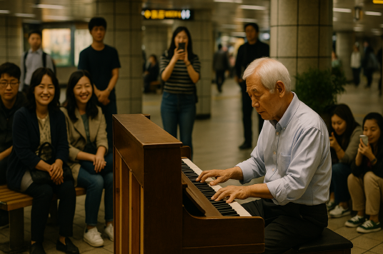 아침과 저녁, 수많은 사람들이 오가는 지하철역은 언제나 사람들로 붐빕니다. 누군가는 출근길에 서둘러 뛰어가고, 또 다른 누군가는 하루를 마치며 집으로 향합니다. 그런 바쁜 흐름 속에서 발걸음을 멈추게 만드는 소리가 있습니다. 바로 오래된 피아노에서 흘러나오는 따뜻한 선율입니다. 이 소리를 따라가면, 피아노 앞에 앉아 있는 흰머리의 할아버지를 만날 수 있습니다. 사람들은 그를 단순히 “지하철 피아노 할아버지”라고 부르지만, 그가 들려주는 음악은 단순한 연주 이상의 의미를 지니고 있습니다.
