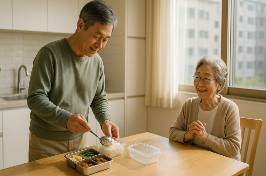 처음 부엌에 서서 도시락을 준비하려니 낯설고 서툴렀다. 달걀말이는 생각처럼 말리지 않았고, 김치볶음은 너무 짜게 되었다. 하지만 나는 매일 조금씩 연습했다. 어머니가 내 도시락을 싸주실 때처럼, 나도 매일 도시락통을 채워보고 싶었다. 하루는 잡채를 해드렸는데 면이 불어버려 어머니께서 웃으시며 “네가 요리하는 걸 보니 옛날 생각이 난다”고 말씀하셨다. 그 웃음을 보는 순간, 비록 서툴러도 내가 하는 일이 어머니께 기쁨이 될 수 있다는 걸 느꼈다.