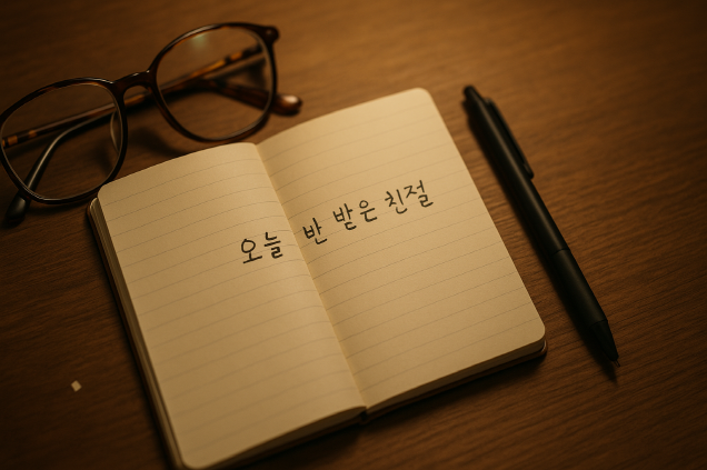 오늘 하루를 돌아보며, 내가 한 친절이나 받은 친절을 딱 한 줄만 적어 보세요.